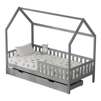 Детското легло Мънк с размери за матрак 90x190 см е изработено от борова дървесина в двуцветен цвят натурално/бяло. Леглото е с форма на палатка и изключително ниски крака, а матракът е поставен върху шперплатови плоскости.